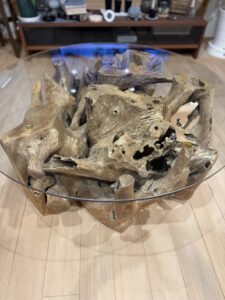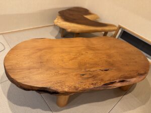 ウォールナットの1枚板テーブル、屋久杉の1枚板テーブル、そして今回お迎えした古木チークのガラステーブル、もみの木の無垢床板とはどれもマッチします♪