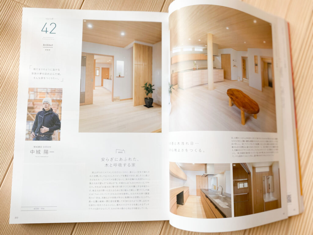 えひめの建築家にクローズアップされ、その建築家さんの作品、デザイナーズハウスの写真集のような建築雑誌です。