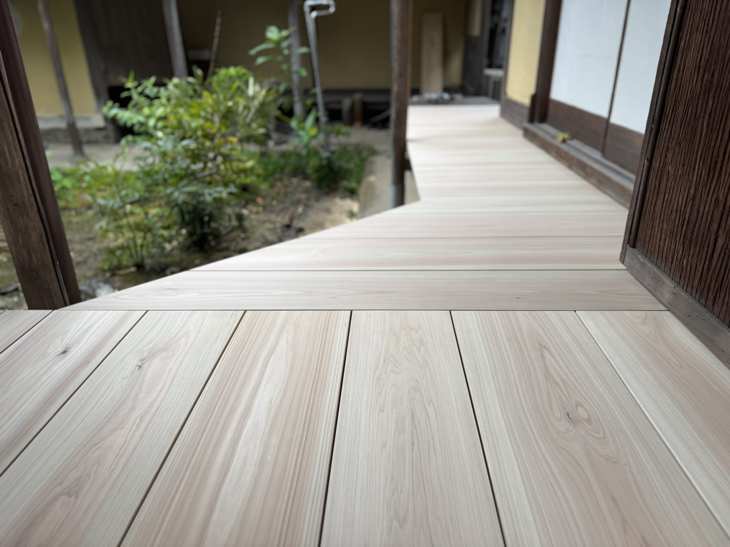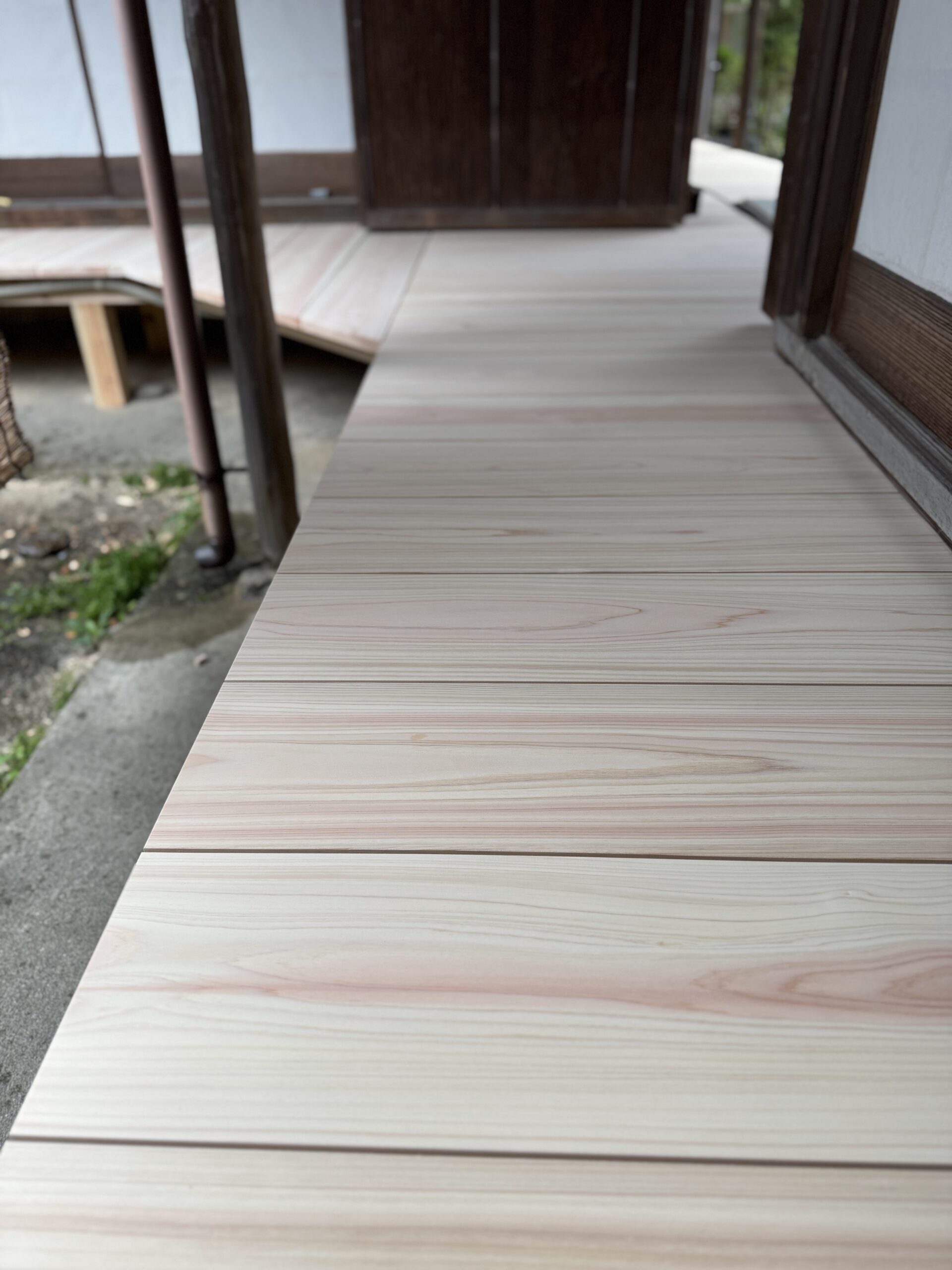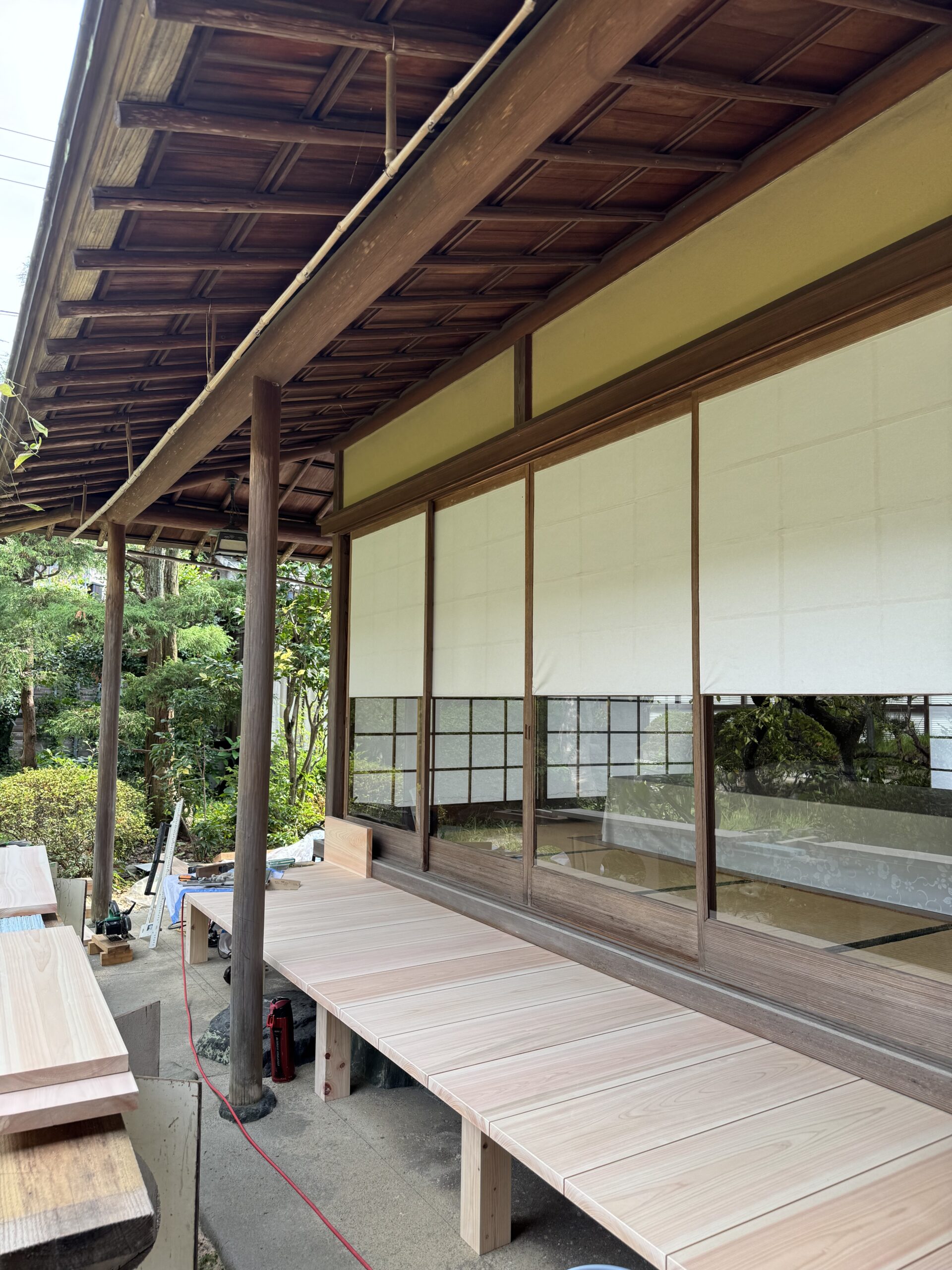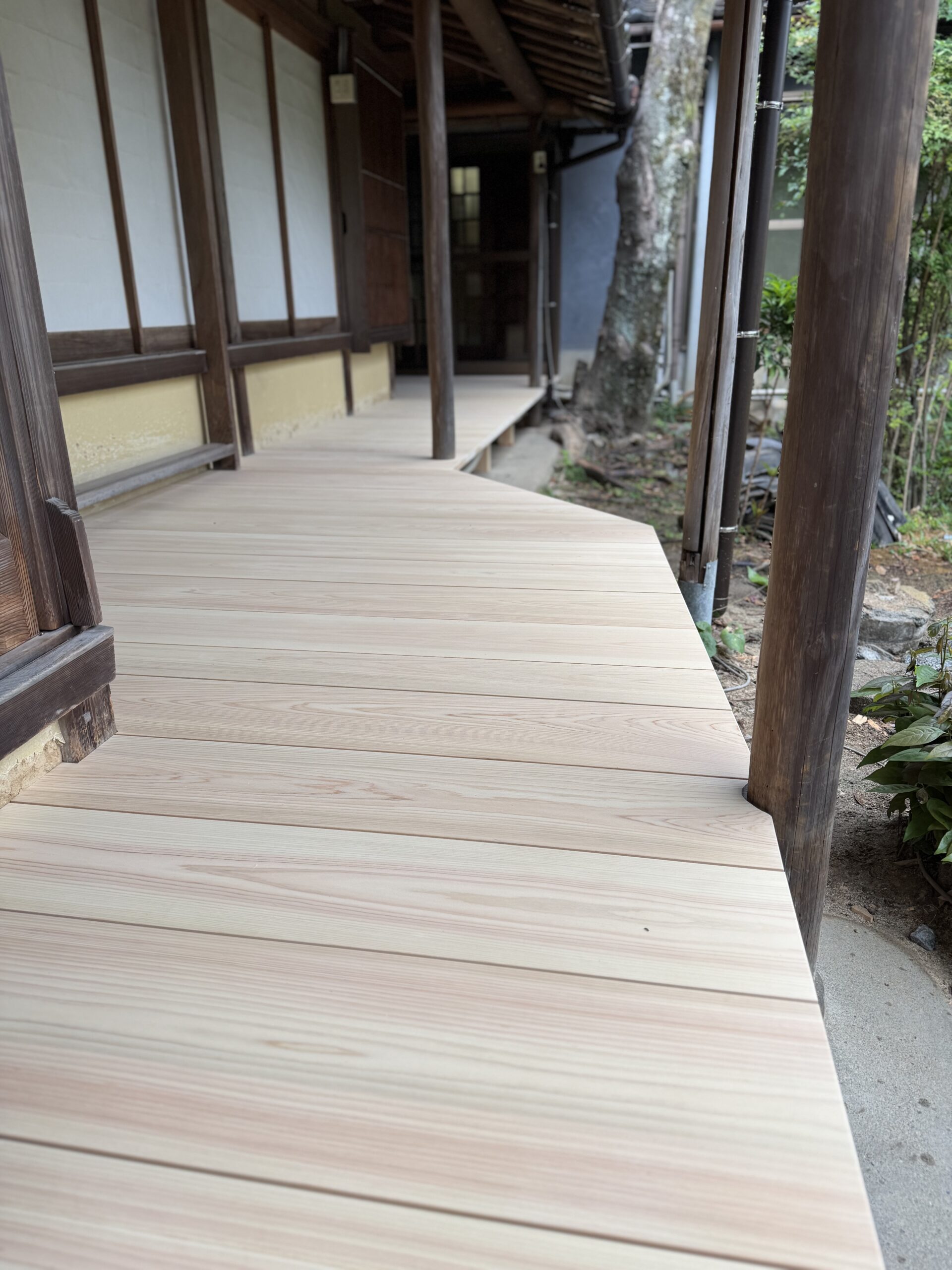 さて、古民家料亭さんの濡縁全改修工事のほうはやっと3分の1ほどが完成いたしました✨