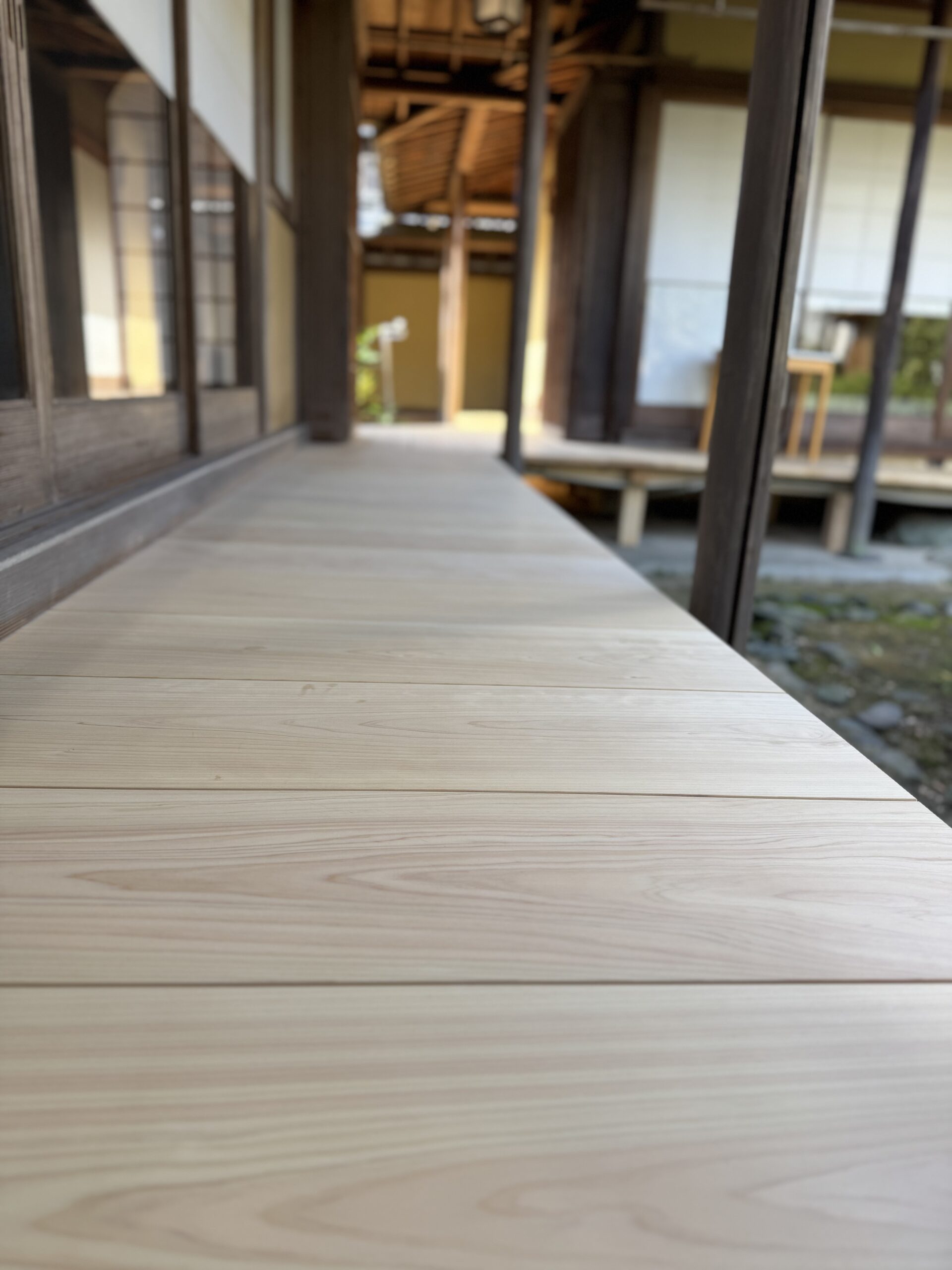 総長さ70メートルを超える濡れ縁、オール化粧材を使った工事で、大工としても腕の見せ所となり、緊張感もありましたがとてもやり甲斐のある仕事でしたね♪😁