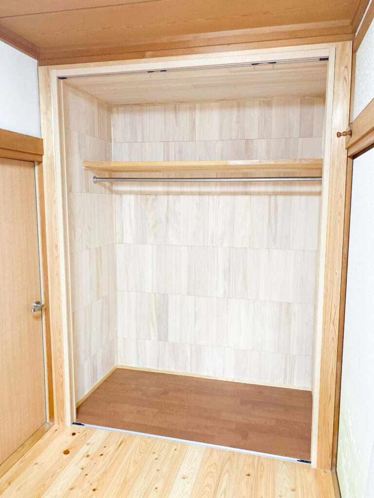 クローゼットの中も同じくリフォームされており、シナベニヤが張られていて、見た目的にはとても綺麗な状態です。
